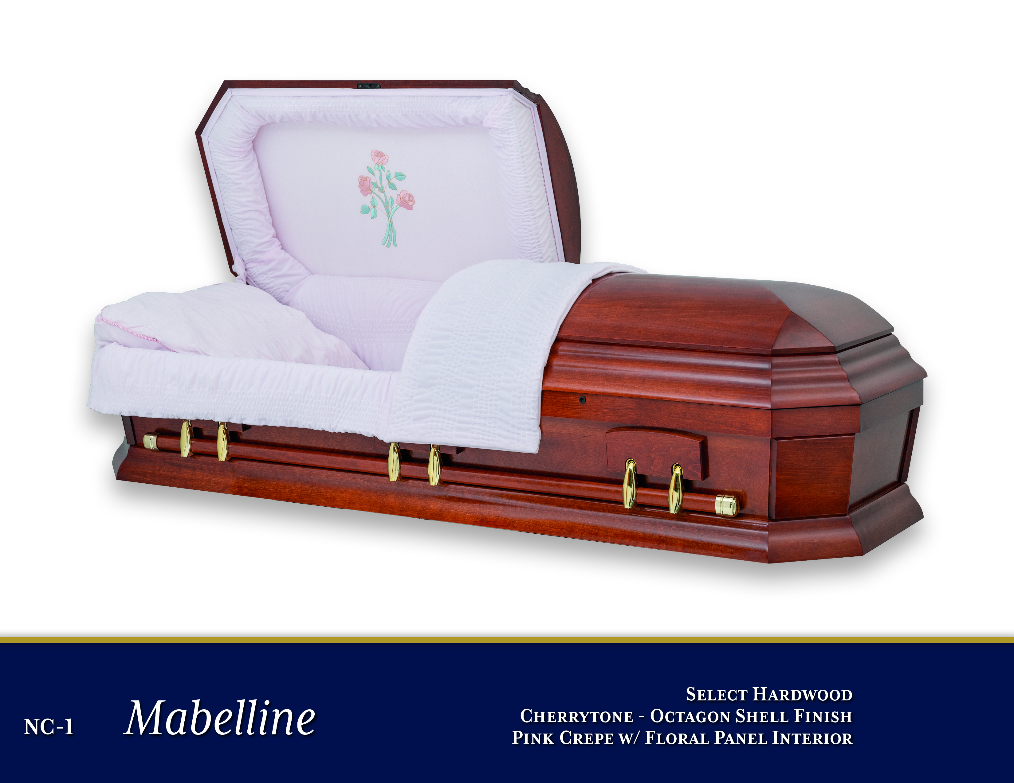 NC-1 Mabelline$4,400.00PriceSelect HardwoodCherrytone FinishPink Crepe Interior with Floral PanelOctagon ShellOpen Shareable Image